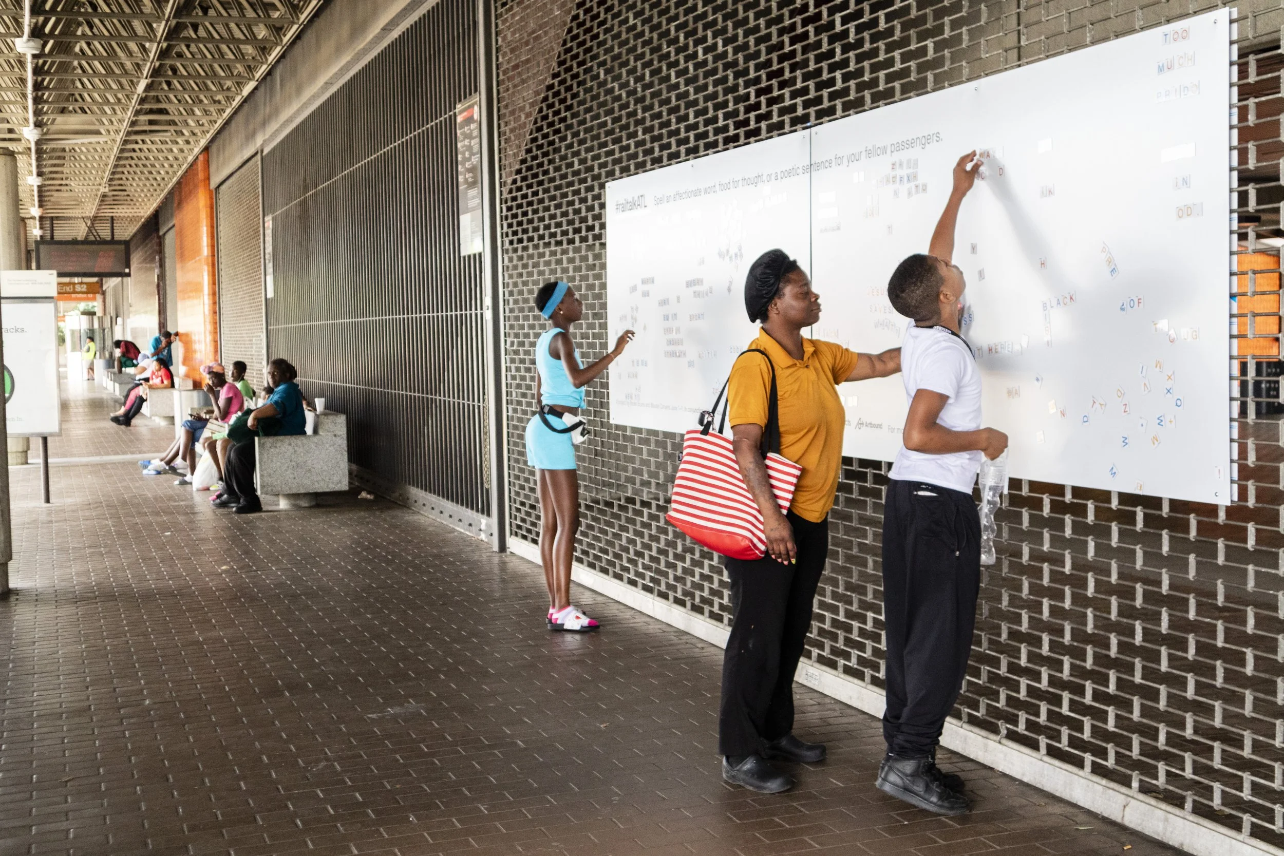 #RailtalkATL was implemented in public transport areas to enhance the joy of waiting while traveling, stimulating spontaneous dialogues, and offering a platform for literary talent. In 2022 we will continue the research in seven more stations of the MARTA public transport network.